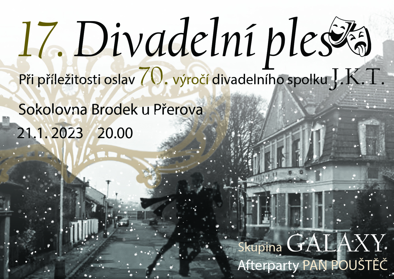 Divadelní spolek J.K.Tyl Brodek u Přerova zve na divadelní ples, který se uskuteční 21.1.2023 od 20 hod. v sokolovně v Brodku u Přerova.
