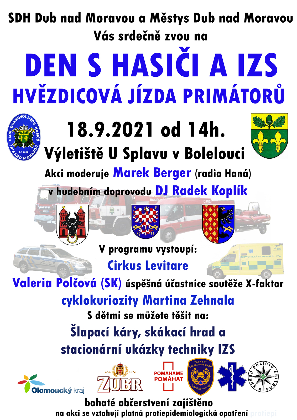 V sobotu 18. září 2021 proběhne Hvězdicová cyklojízda primátorů, které se můžete zúčastnit také vy. Můžete přijít přivítat účastníky cyklojízdy v parku nebo společně s nimi pokračovat do Dubu na kole. Příjezd do naší obce - do zámeckého parku - je předpoklad ve 14:15 hod. Čas je orientační, může to být o trochu dříve. Jízda primátorů pokračuje do Dubu nad Moravou, kde bude pokračovat doprovodný program. Více informací na přiloženém letáčku.