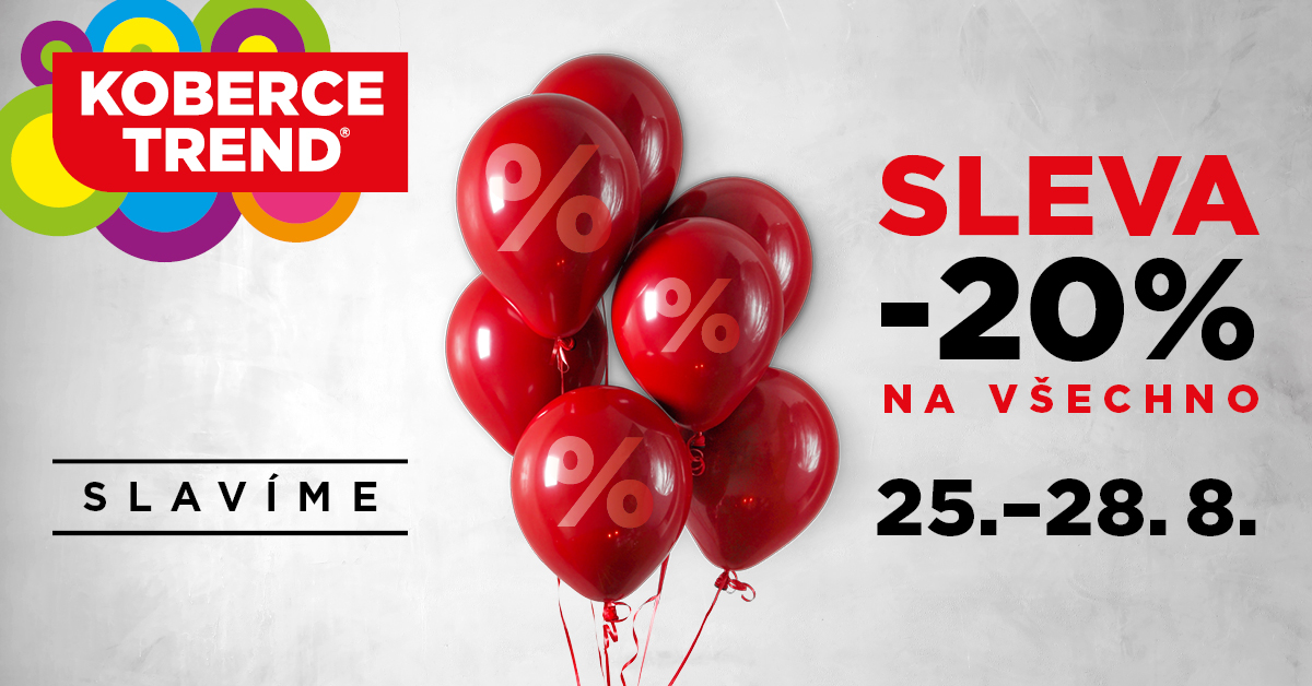 Koberce trend mají mimořádnou akci mínus 20% na všechno zboží! Pouze od středy 25.8.2021 až do soboty 28.8.2021 mínus 20% na vše! Přesvědčte se o skvělých cenách na koberce, pvc, vinyl, laminát a další sortiment v prodejně Koberce Trend Přerov.
