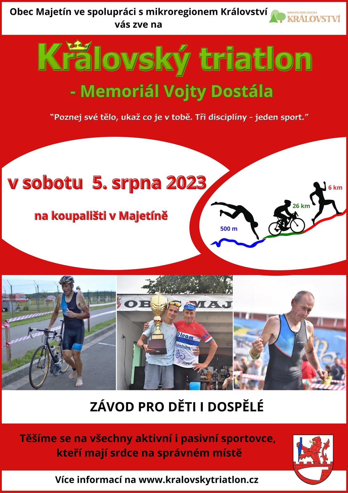 Obec Majetín ve spolupráci s mikroregionem Království vás zve na královský triatlon, který se uskuteční v sobotu 5.8.2023 na koupališti v Majetíně. Více informací na přiloženém letáčku.