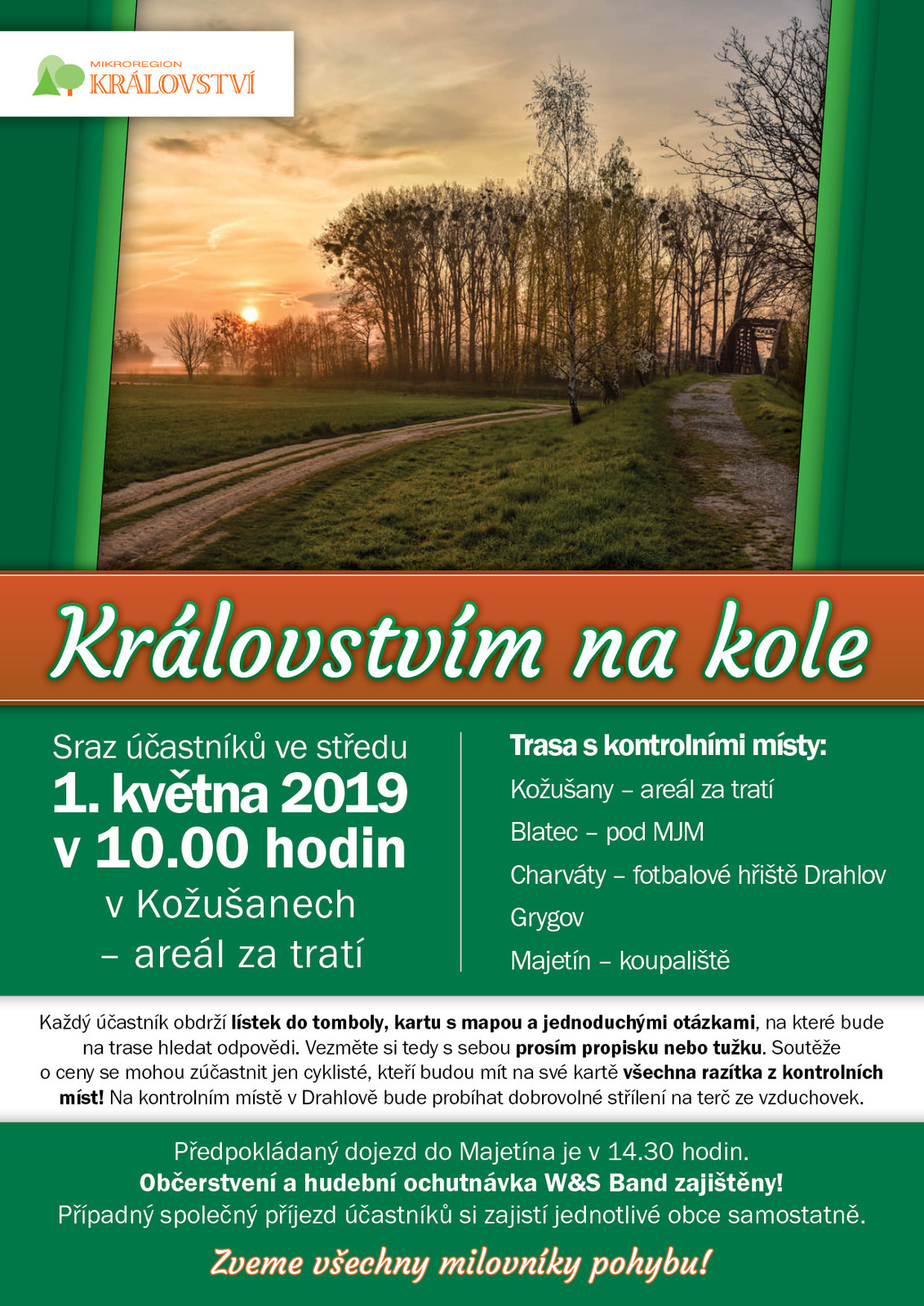 Mikroregion Království zve všechny milovníky pohybu na cyklistickou vyjížďku "Královstvím na kole", která se uskuteční 1. května 2019. Sraz je 10:00 hod. v areálu za tratí v Kožušanech. Více informací na přiloženém letáčku.