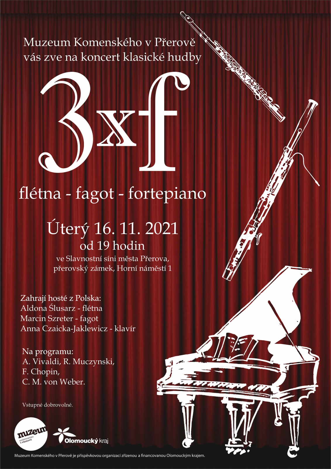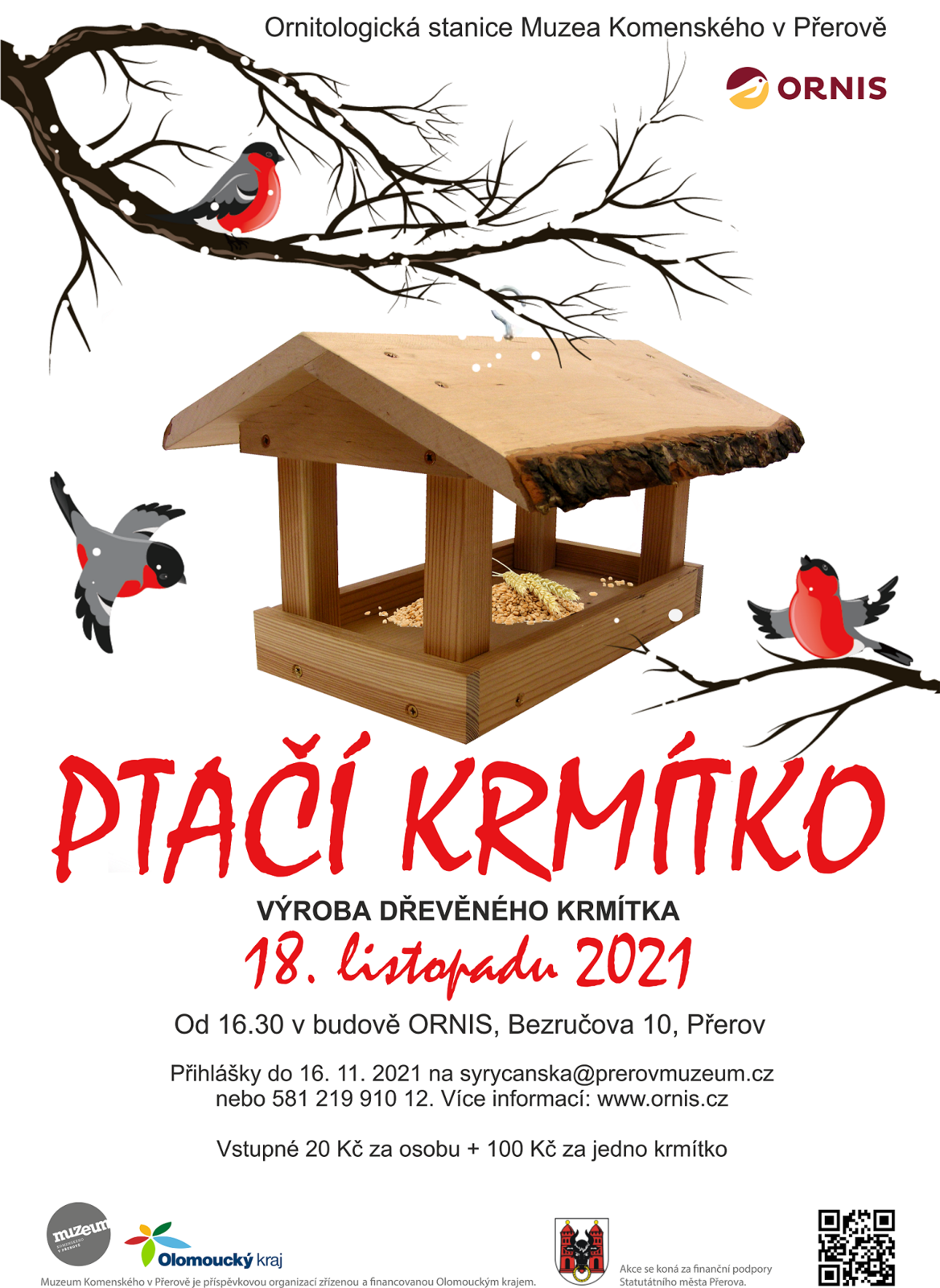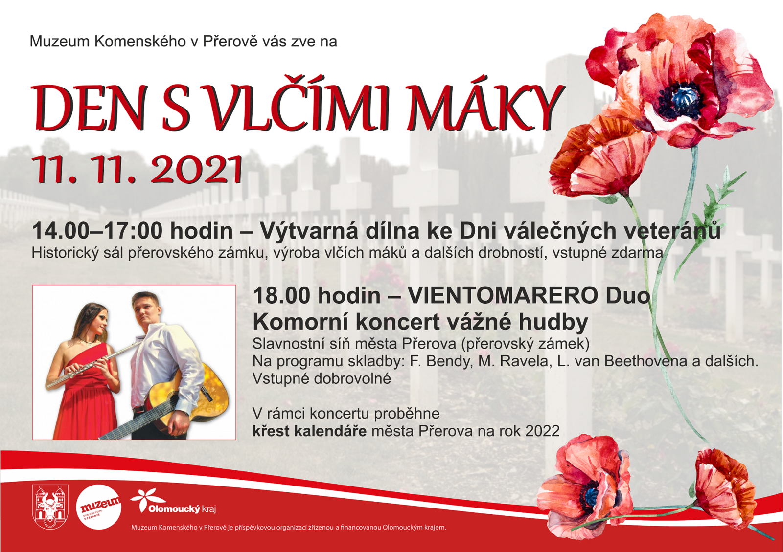 Muzeum Komenského v Přerově představuje program na měsíc listopad 2021. Společně s programem zve ve čtvrtek 11. listopadu na Den s vlčími máky, kdy je na programu od 14 do 17 hodin výtvarná dílna a od 18 hodin komorní koncert vážné hudby. V úterý 16. listopadu od 19 hodin zve na koncert klasické hudby 3xf flétna – fagot – fortepiano. Ve čtvrtek 18. listopadu si budete moci v ornitologické stanici od 16.30 vyrobit dřevěné ptačí krmítko. Více informací na přiložených letáčcích nebo na webu: