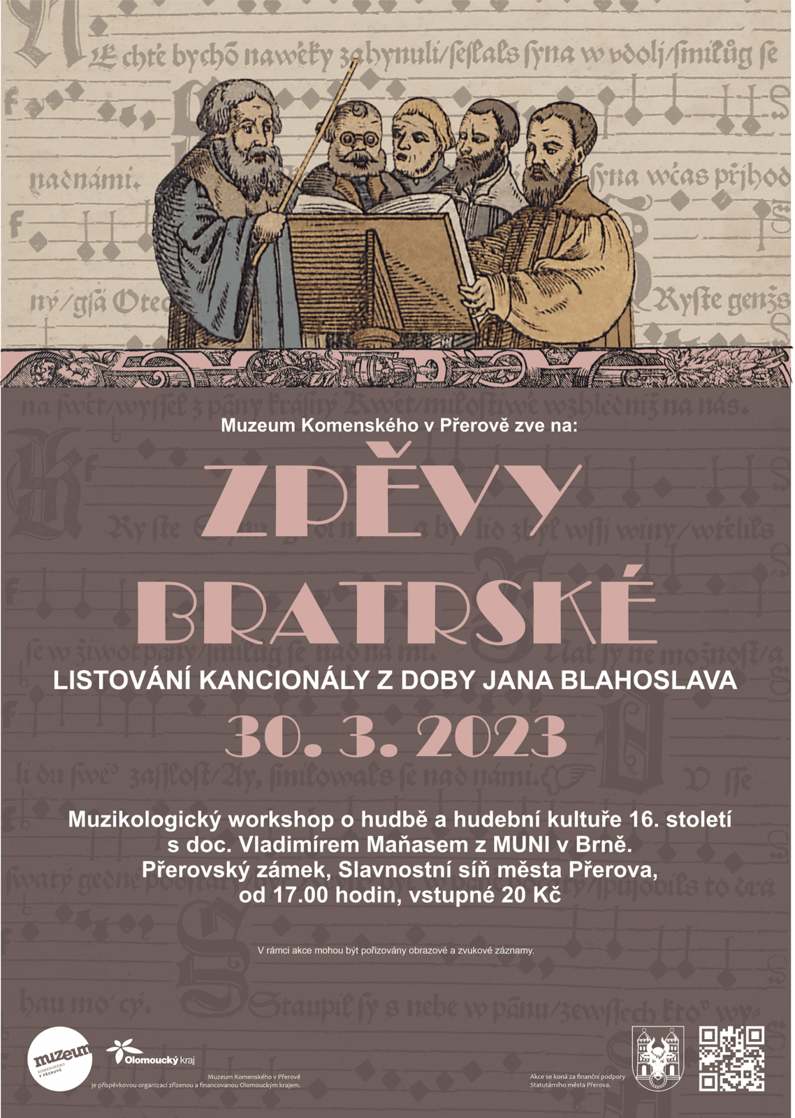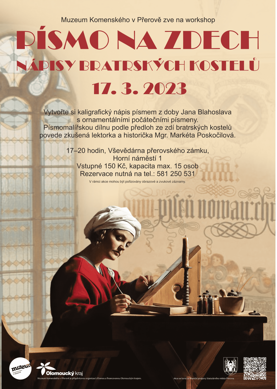 Muzeum Komenského v Přerově představuje program na měsíc březen 2023 a společně s ním i pozvánku na cestovatelskou přednášku Jana Husáka Skotsko, magický sever Velké Británie, která se uskuteční 9. března od 17 hodin v Korvínském domě. V pátek 17. března od 17 do 20 hodin Vás zveme na workshop s názvem Písmo na zdech, nápisy bratrských kostelů, kde si budete moci vytvořit kaligrafický nápis písmem z doby Jana Blahoslava s ornamentálními počátečními písmeny. Ve čtvrtek 30. března od 17 hodin proběhne muzikologický workshop Zpěvy bratrské, kterým Vás provede doc. Vladimír Maňas a přiblíží Vám hudbu a hudební kulturu 16. století. V neposlední řadě bychom Vás rádi pozvali na Vynášení smrti pořádané Dětským folklorním souborem Trávníček a Folklorním souborem Haná Přerov dne 26. března od 10.30.
