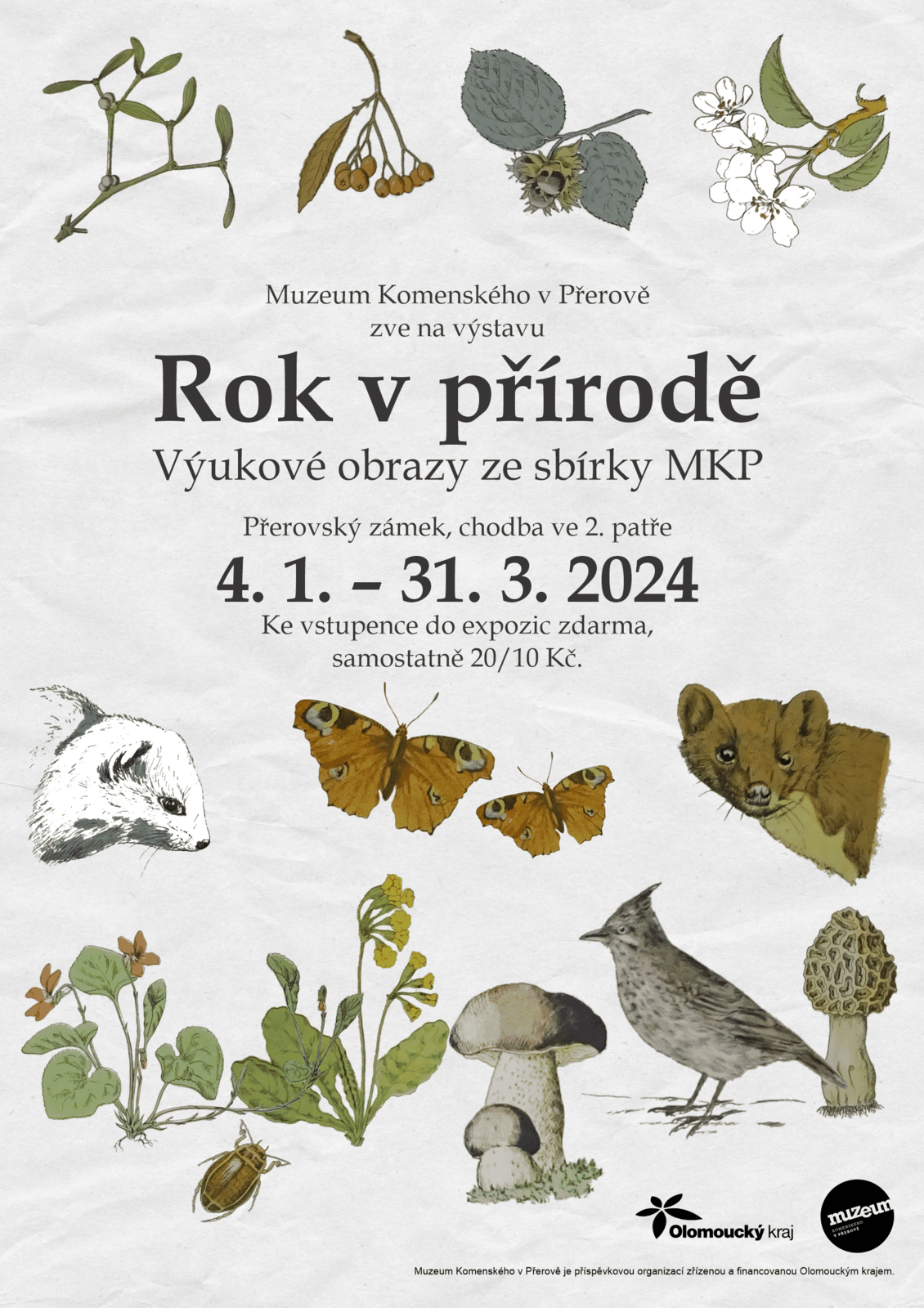 Zároveň představujeme program Muzea Komenského na měsíc leden 2024 a společně s ním zveme od 4. ledna na výstavu Rok v přírodě do přerovského zámku a od 17. ledna na výstavu Příroda rukou krajkářky v ornitologické stanici.