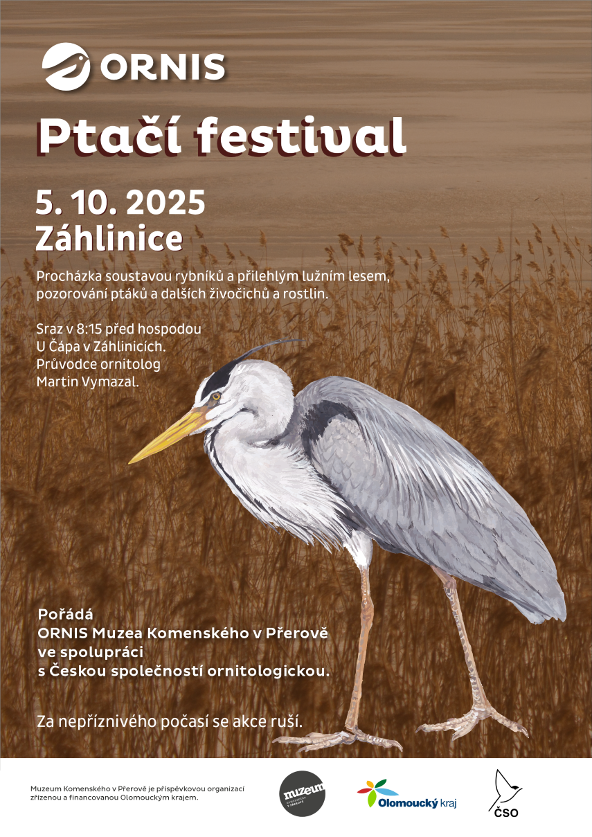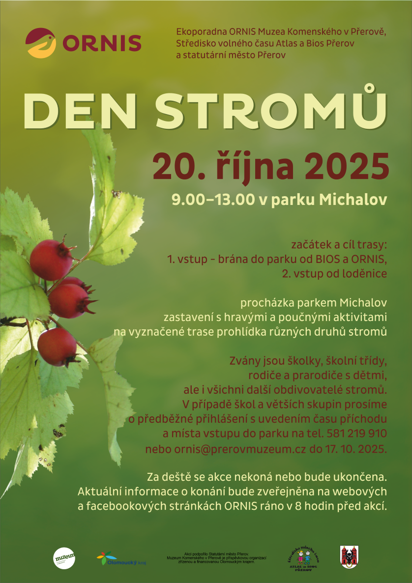 Bohatý program nabídne i Ornitologická stanice ORNIS. Od 4. do 11. října se v zahradě uskuteční panelová výstava na stromech – Neviditelné trny. V neděli 5. října vás čeká Ptačí festival v Záhlinicích s ukázkou odchytu a kroužkování ptáků. V pondělí 20. října proběhne Den stromů s dopoledním programem pro školy i veřejnost a odpolední komentovanou prohlídkou parku Michalov. Ve čtvrtek 23. října pak nabídneme komentovanou prohlídku výstavy Věda malebná s autorkou Mgr. Ph.D. Lenkou Harmáčkovou.