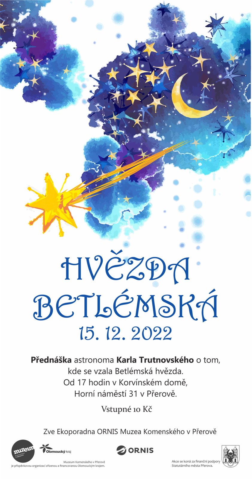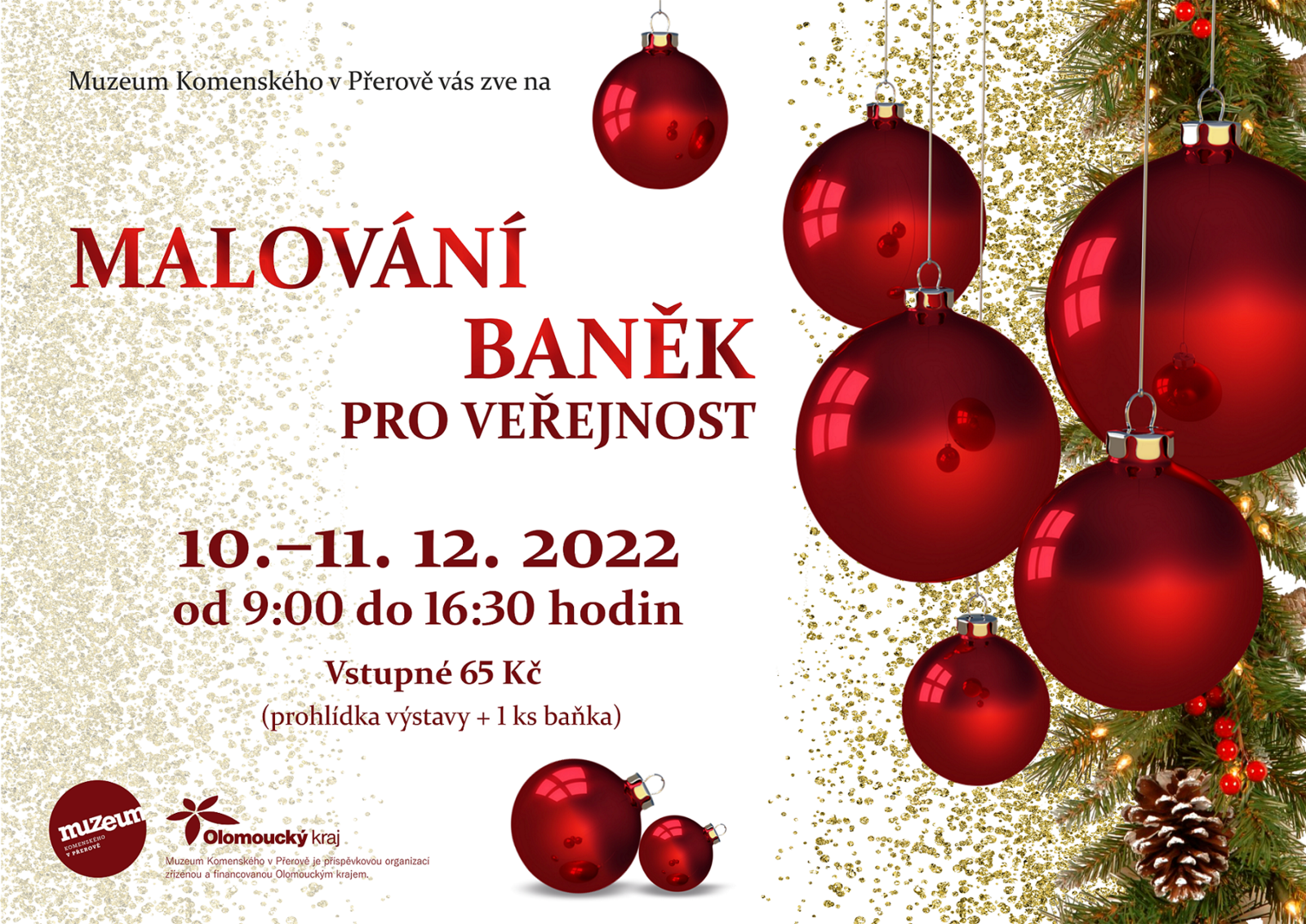 Muzeum Komenského v Přerově představuje program na měsíc prosinec 2022 a společně s ním i pozvánku na výtvarnou dílnu Malování baněk pro veřejnost, která proběhne 10. a 11. prosince od 9.00 do 16.30 hodin v prostorách přerovského zámku. Ve čtvrtek 15. prosince od 17 hodin Vás srdečně zve do Korvínského domu na přednášku astronoma Karla Trutnovského Hvězda Betlémská.