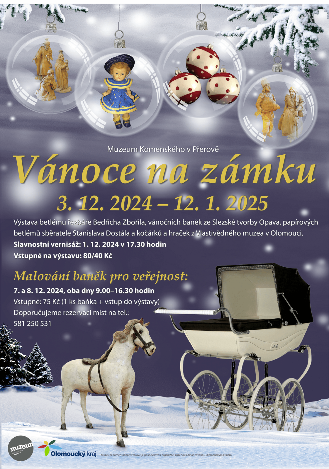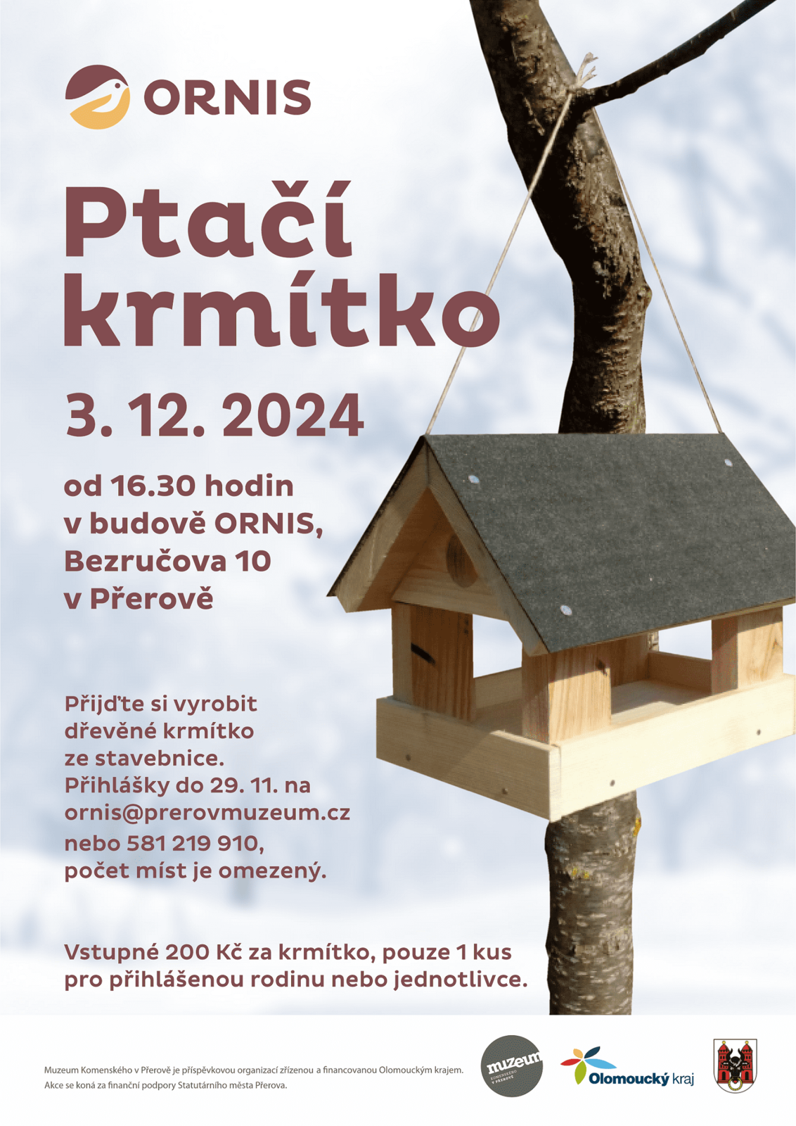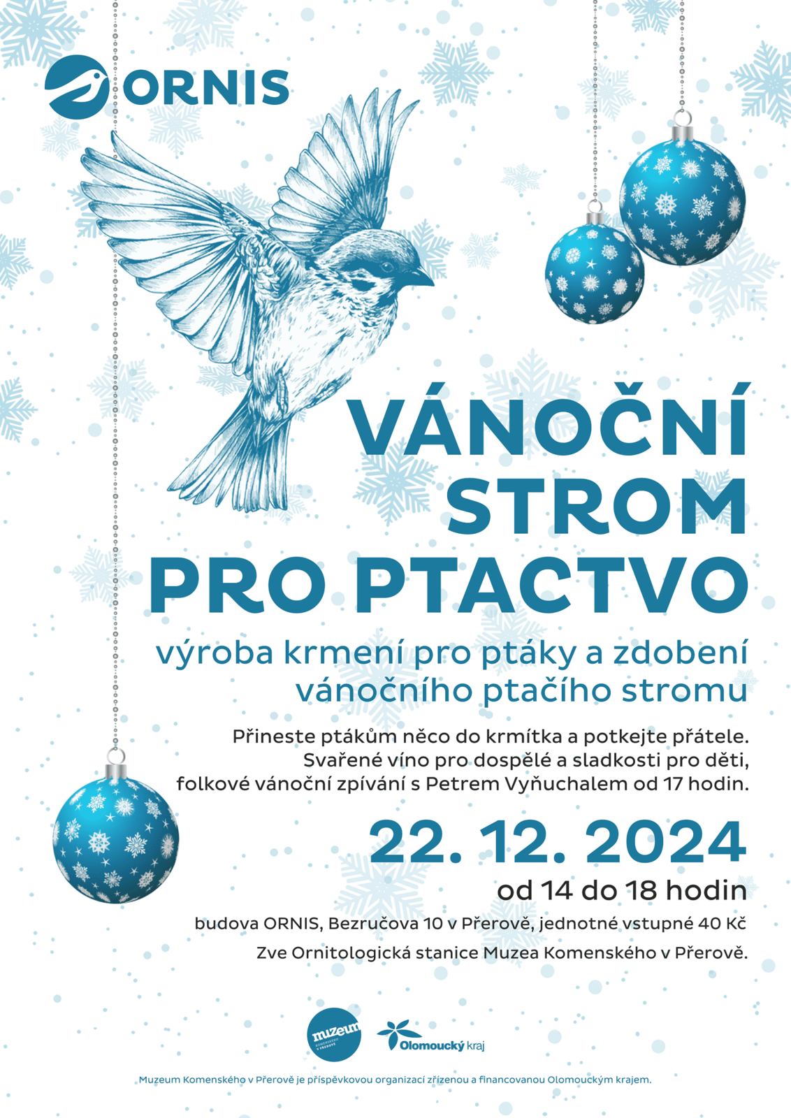 Muzeum Komenského v Přerově představuje program na měsíc prosinec 2024 a společně s ním i pozvánku na výstavu Vánoce na zámku. V úterý 3. prosince od 16.30 si budete moci v ornitologické stanici vyrobit ptačí krmítko. Srdečně Vás zveme 7. a 8. prosince od 9.00 do 16.30 na malování baněk pro veřejnost. V sobotu 21. prosince od 17 do 19 hodin proběhne na molu u loděnice Svátek světla. Ozdobit vánoční strom pro ptactvo budete moci v ornitologické stanici v neděli 22. prosince od 14 do 18 hodin.