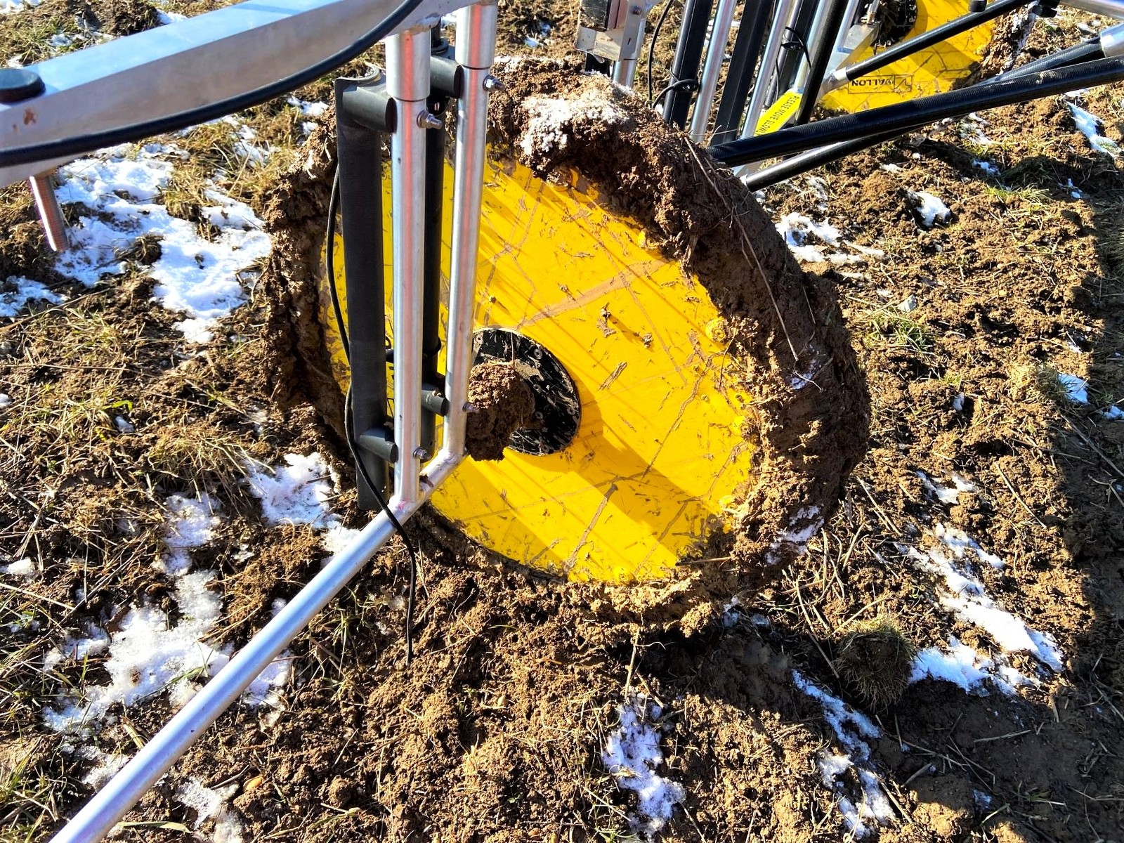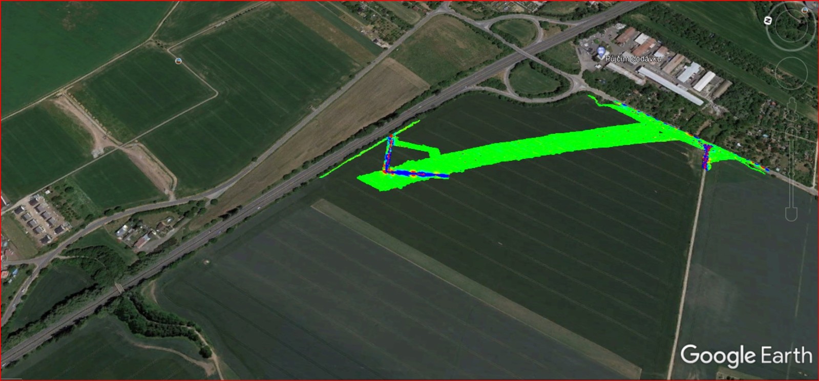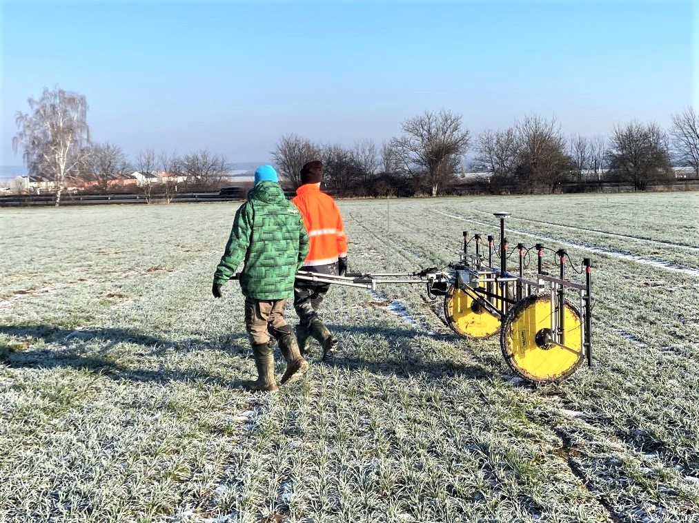 3) Měřící skupina prozkoumá vytyčenou plochu pomocí magnetometru. Získaná terénní data následně podléhají zpracování do formátu map vertikálního gradientu magnetického pole země. Tyto mapy obdrží skupina pyrotechniků pro následné ověření.