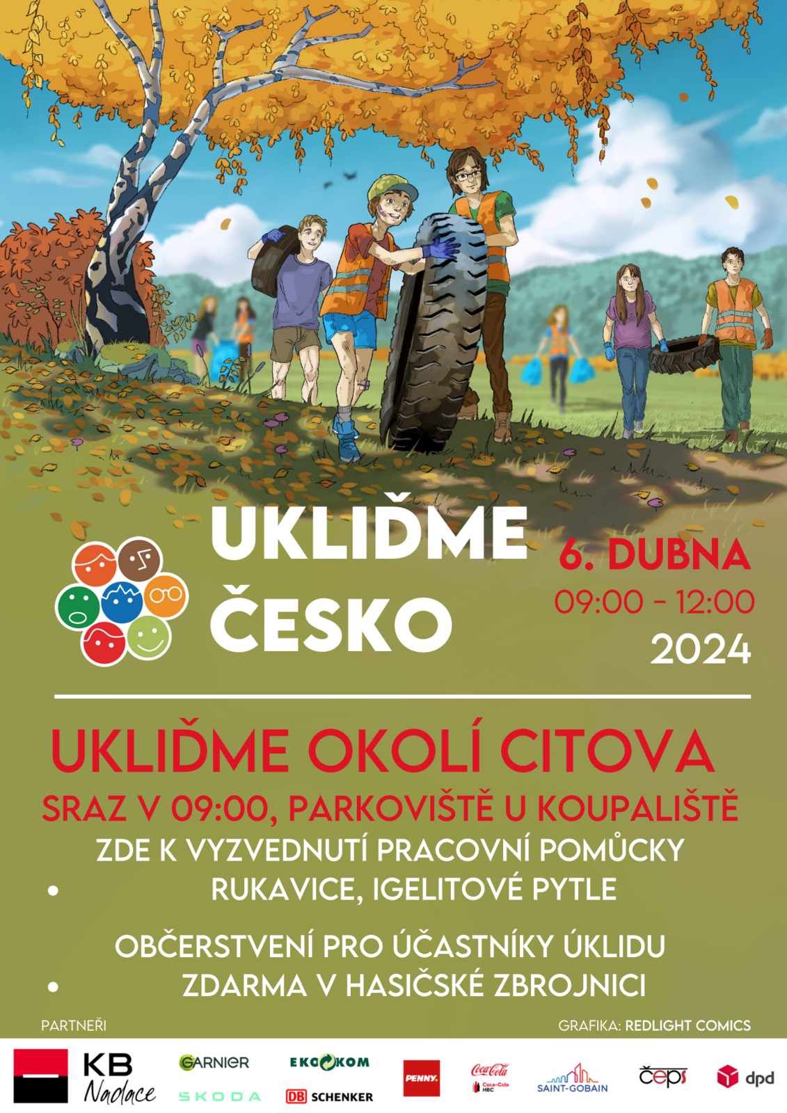 Obec Citov zve širokou veřejnost na jarní akci "Ukliďme Česko - ukliďme okolí Citova". Úklid se uskuteční v sobotu 6.4.2024 v čase 9-12 hod. Sraz v 9 hod. na parkovišti u koupaliště.