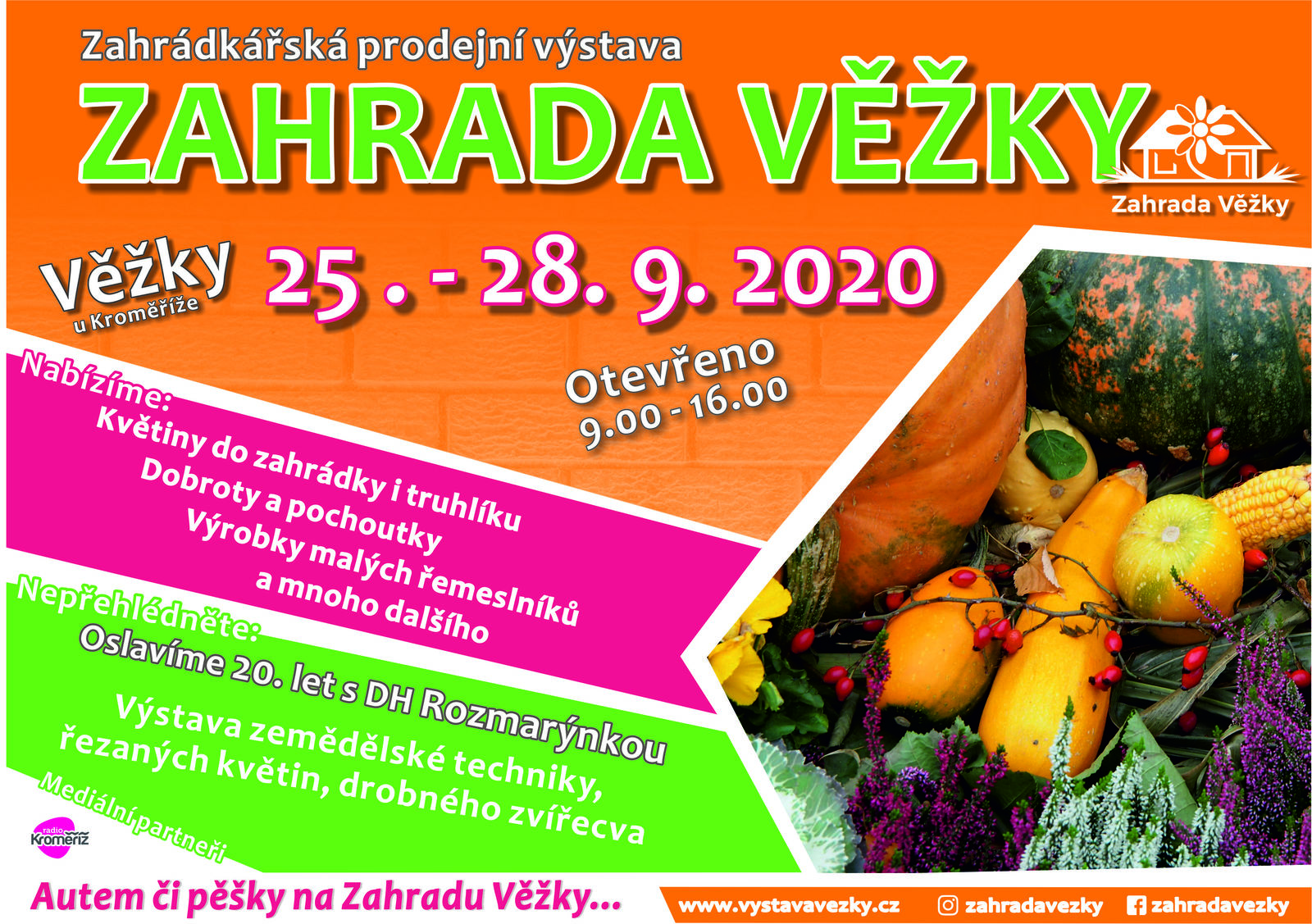 Podzimní výstava Zahrada Věžky se koná v termínu od 25. – 28. 9. 2020 každý den od 9 do 16 hodin. Pro návštěvníky je připraven hudební doprovodný program, výstava zemědělské techniky, expozice řezaných květin a výstava drobného zvířectva. Nespočet řemeslníků, zahradníků, pěstitelů a chovatelů z celé ČR nabídnou své zboží pod širým nebem v zámeckém parku.