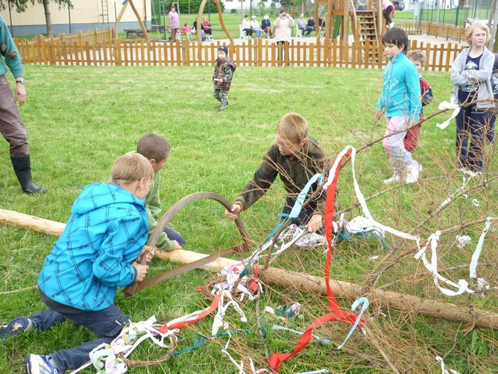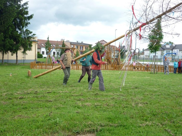 Konec měsíce května je ve znamení kácení májky. Mateřská škola ve spolupráci s kulturní komisí obce pozvala lidičky na program kácení v pátek 31.5. odpoledne. Májku již tradičně hlídal přísný Frňous a vzal si na pomoc dva Šiškožrouty. Kdo je uplatil nasbíranými šiškami, mohl řezat pilou či sekat sekerou, ale jen než někdo další přiběhl se šiškami. Nakonec májka padla, byla pořezána a posloužila k opékání buřtíků. Někteří se šli občerstvovat, ale ti hravější se pustili do kuličkového turnaje. Hrálo se v několika věkových kategoriích. Menším se dařilo při hře "Důlek" a ti starší lépe využili akčnější hru "Paša". Součet bodů, vlastně kuliček z obou disciplín určil vítěze, na které čekaly diplomy kuličkového krále a sladká odměna. Počasí nám přálo, svítilo sluníčko, kuličky se koulely a byla pohoda. Díky všem, co si přišli pohrát nebo jen kouknout.